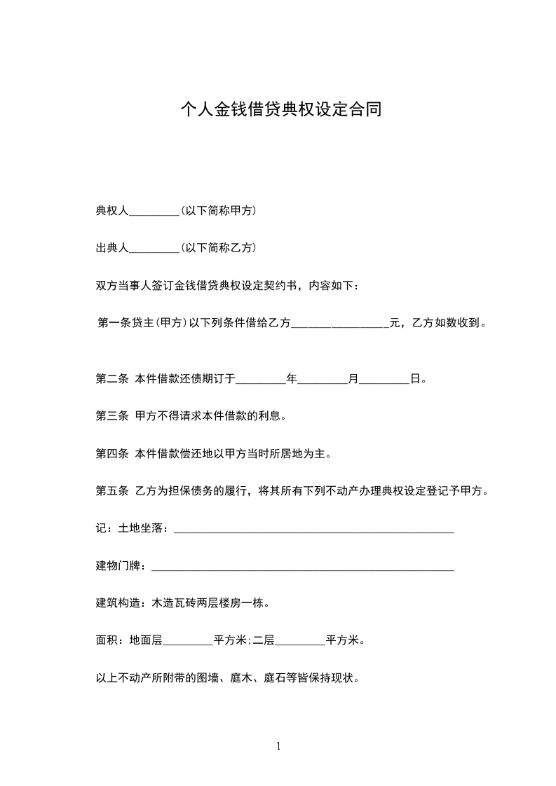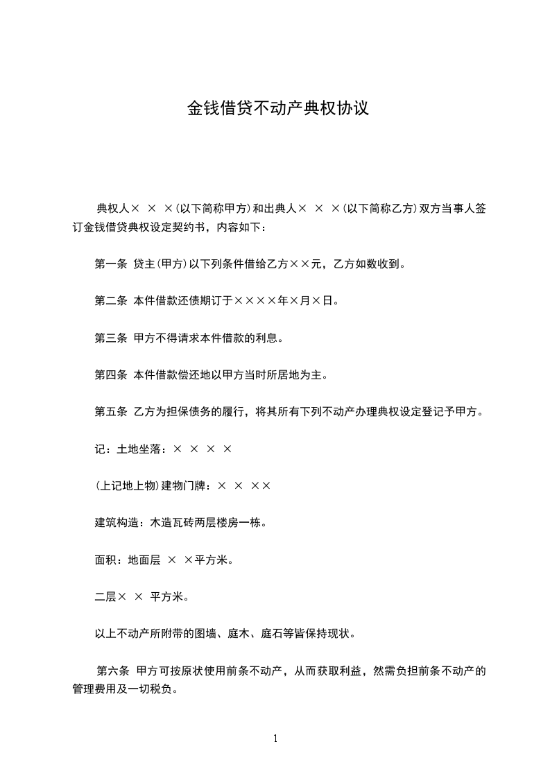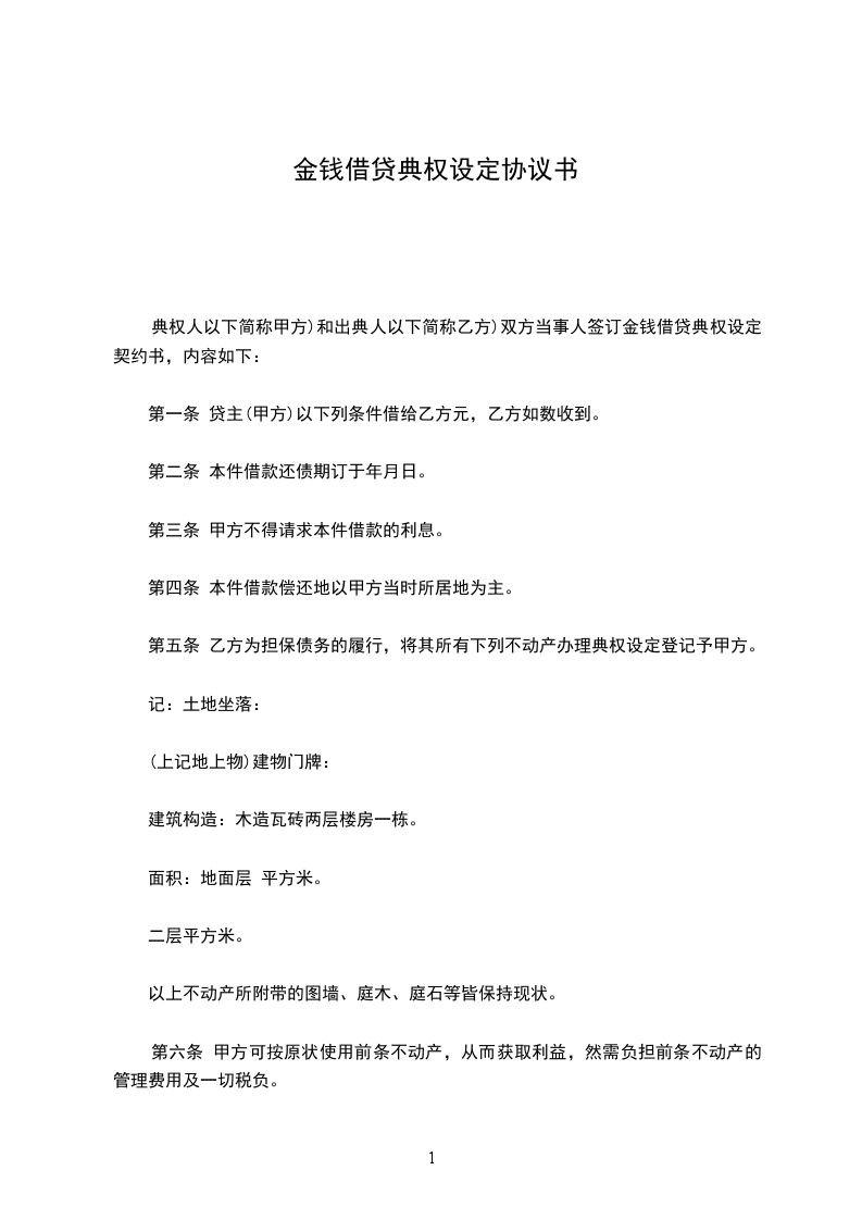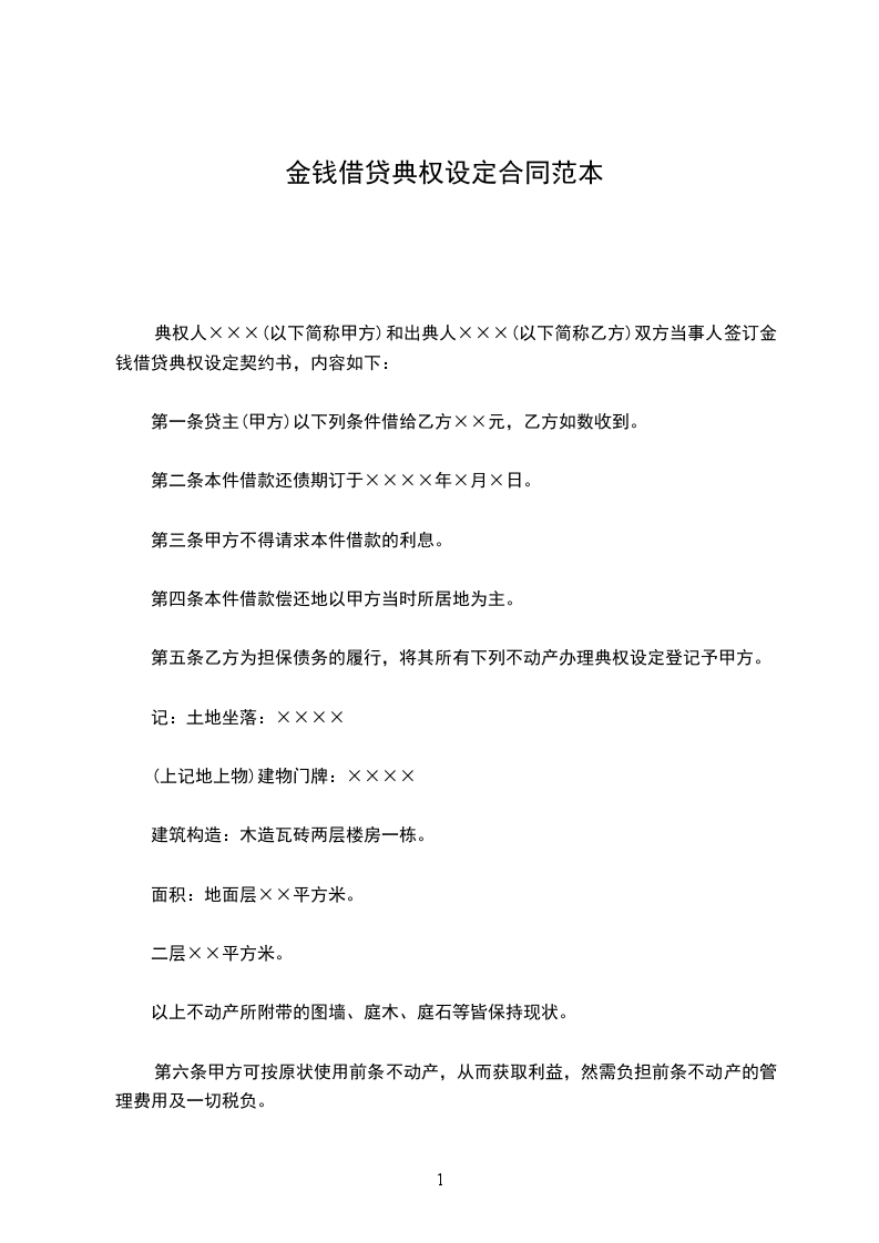 典权人×××(以下简称甲方)和出典人×××(以下简称乙方)双方当事人签订金钱借贷典权设定契约书,内容如下:
