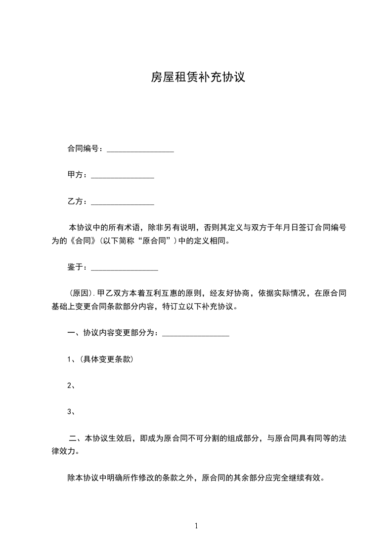 (原因).甲乙双方本着互利互惠的原则,经友好协商,依据实际情况,在原合同基础上变更合同条款部分内容,特订立以下补充协议。