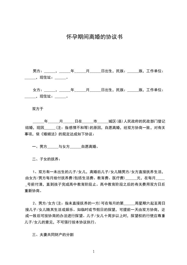 一、______、______自愿离婚。