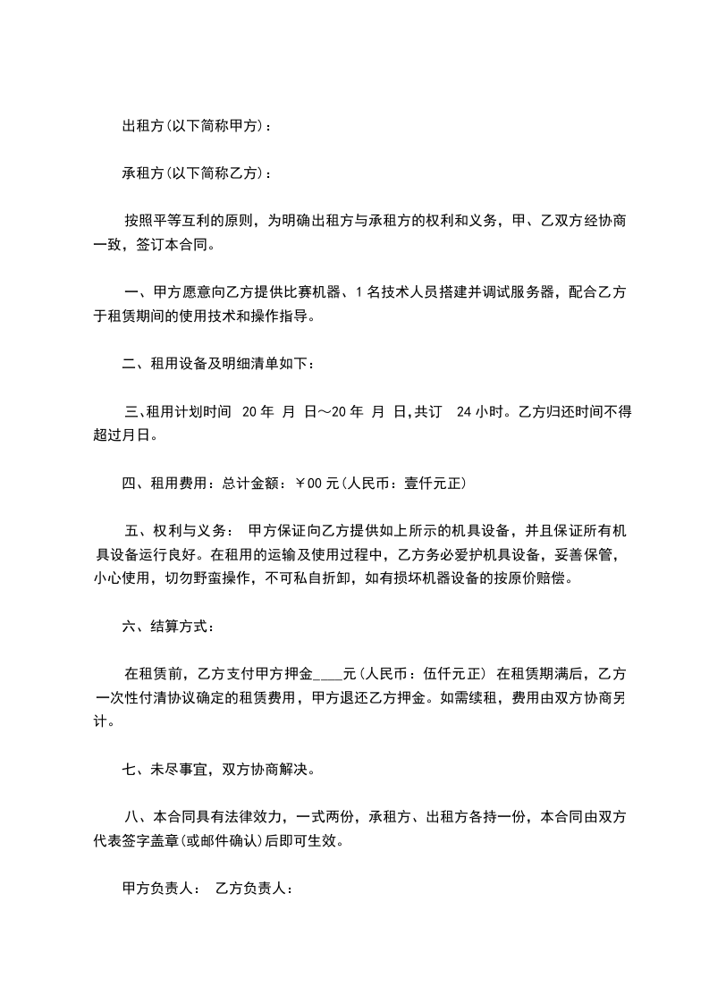 (4)使用结束后,乙方一次结清费用并且必须做好设备的退场工作,完好退还到甲方指定地点。