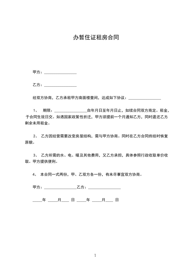 经双方协商,乙方承租甲方南面楼壹间,达成如下协议:_________________