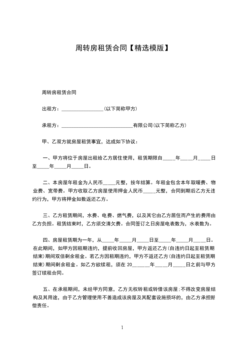六、每套周转房甲方收取押金1000元人民币,退房时不计息退回。