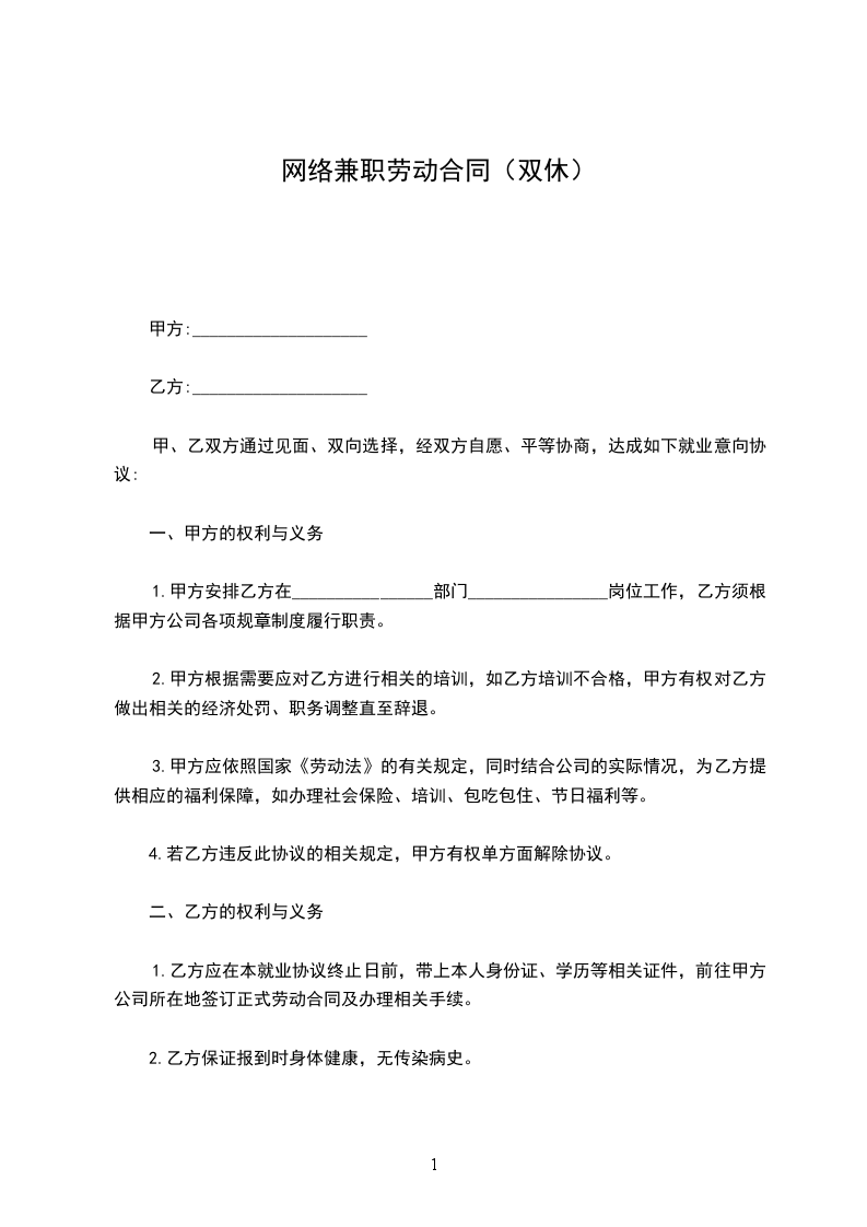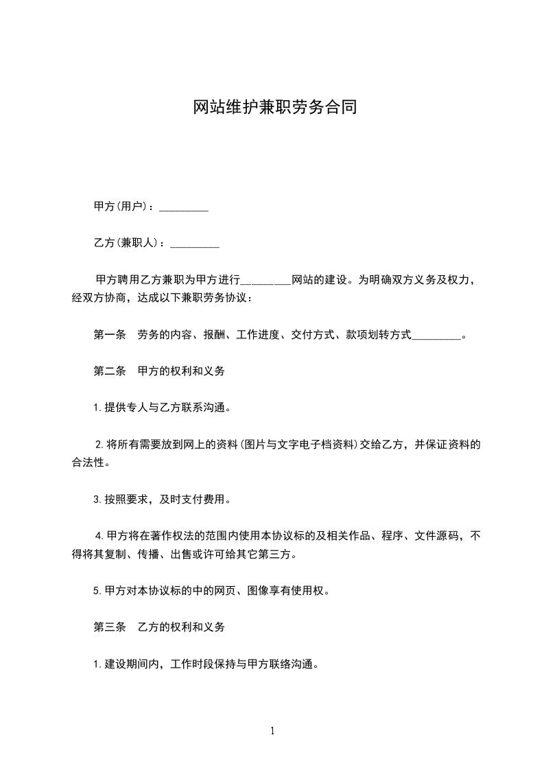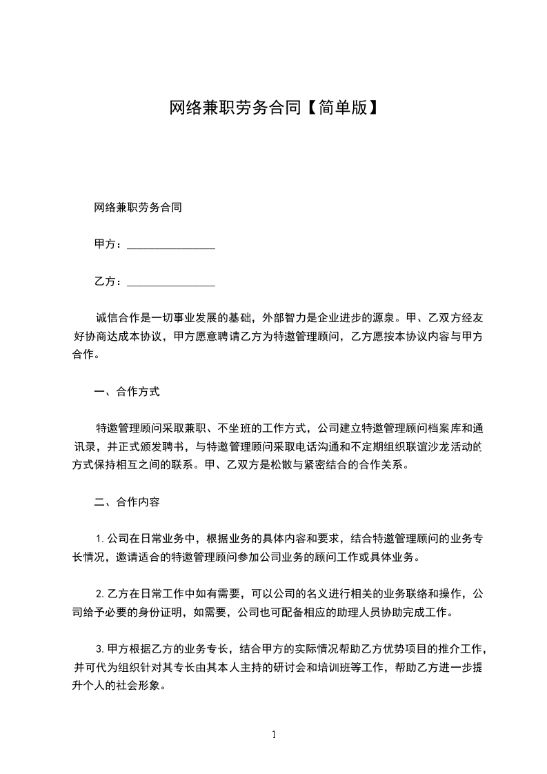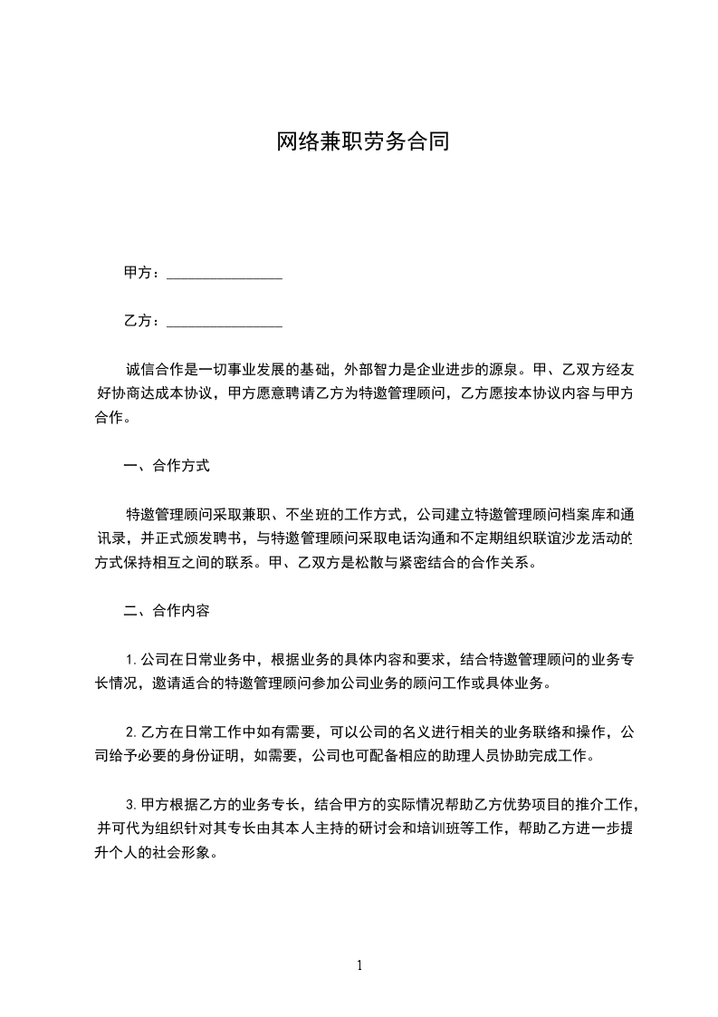 1.甲方与乙方之间属于非雇佣关系,甲方不支付给乙方固定的薪金报酬,也不收取任何服务费用。