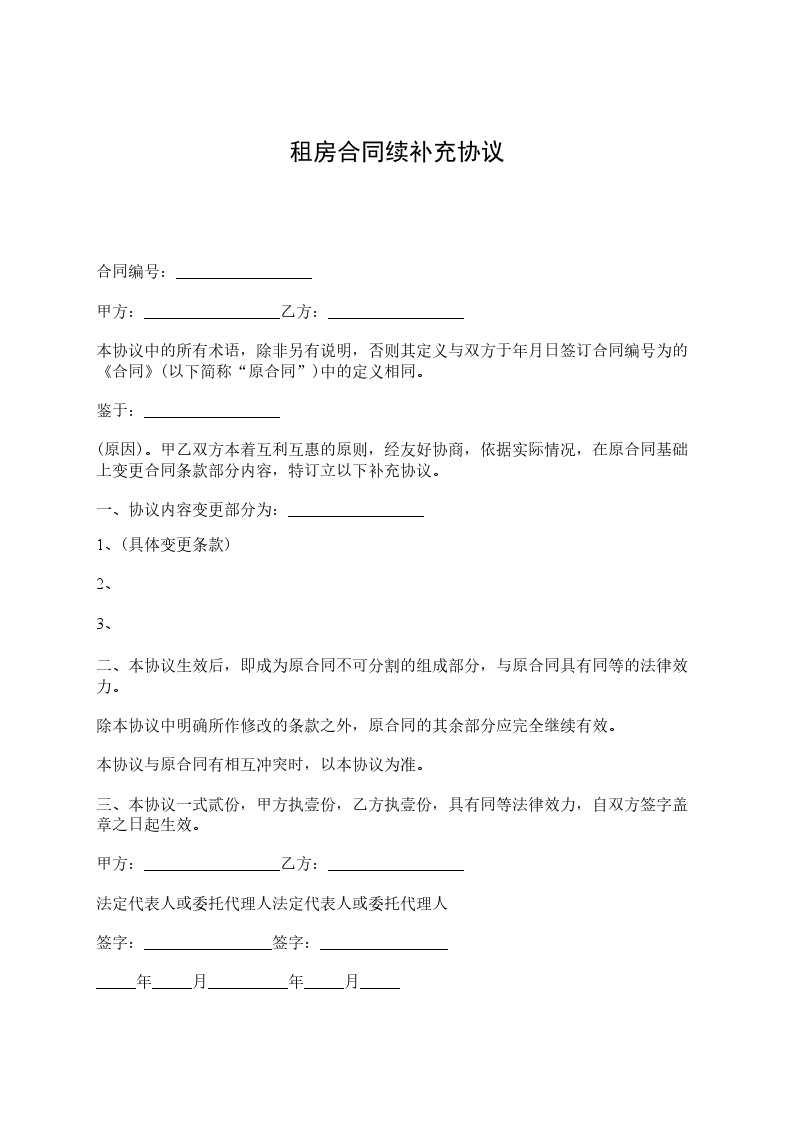 合同编号:_________________ 甲方:_________________乙方:_________________ 本协议中的所有术语,除非另有说明,否则其定义与双方于_____年_____月_____日签订合同编号为的《合同》(以下简称“原合同”)中的定义相同。 鉴于:_________________ (原因)。甲乙双方本着互利互惠的原则,经友好协商,依据实际情况,在原合同基础上变更合同条款部分内容,特订立以下补充协议。 一、协议内容变更部分为:_________________ 1、(具体变更条款) 2、 3、 二、本协议生效后,即成为原合同不可分割的组成部分,与原合同具有同等的法律效力。 除本协议中明确所作修改的条款之外,原合同的其余部分应完全继续有效。 本协议与原合同有相互冲突时,以本协议为准。 三、本协议一式贰份,甲方执壹份,乙方执壹份,具有同等法律效力,自双方签字盖章之日起生效。 甲方:_________________乙方:_________________ 法定代表人或委托代理人法定代表人或委托代理人 签字:________________签字:________________ _____年_____月__________年_____月_____