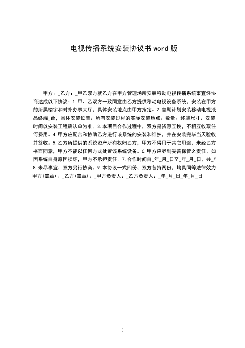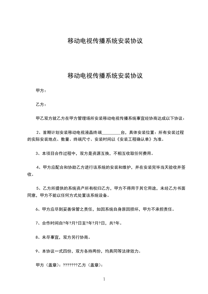移动电视传播系统安装协议