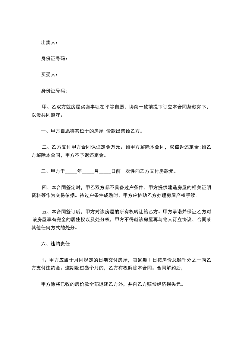 买房人(以下简称乙方):_________________身份证号码:_________________