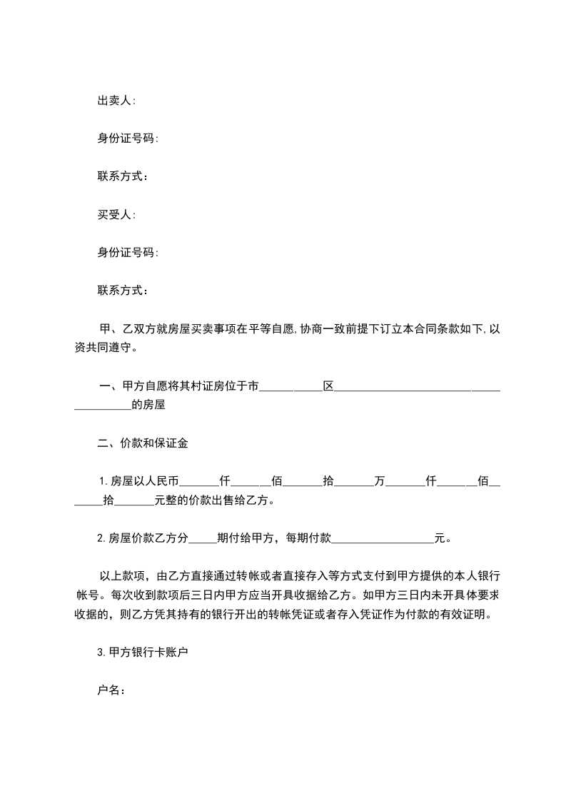 卖房人(以下简称甲方):_________________身份证号码:_________________