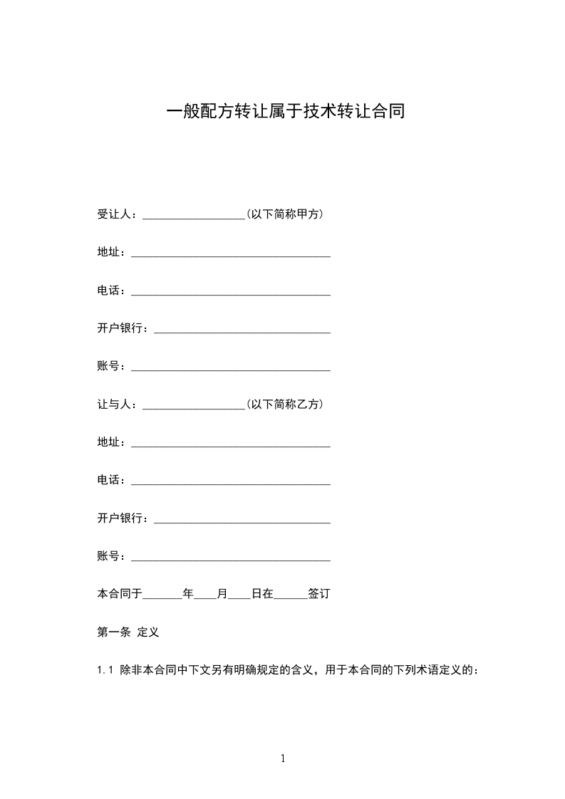 配方转让协议范本