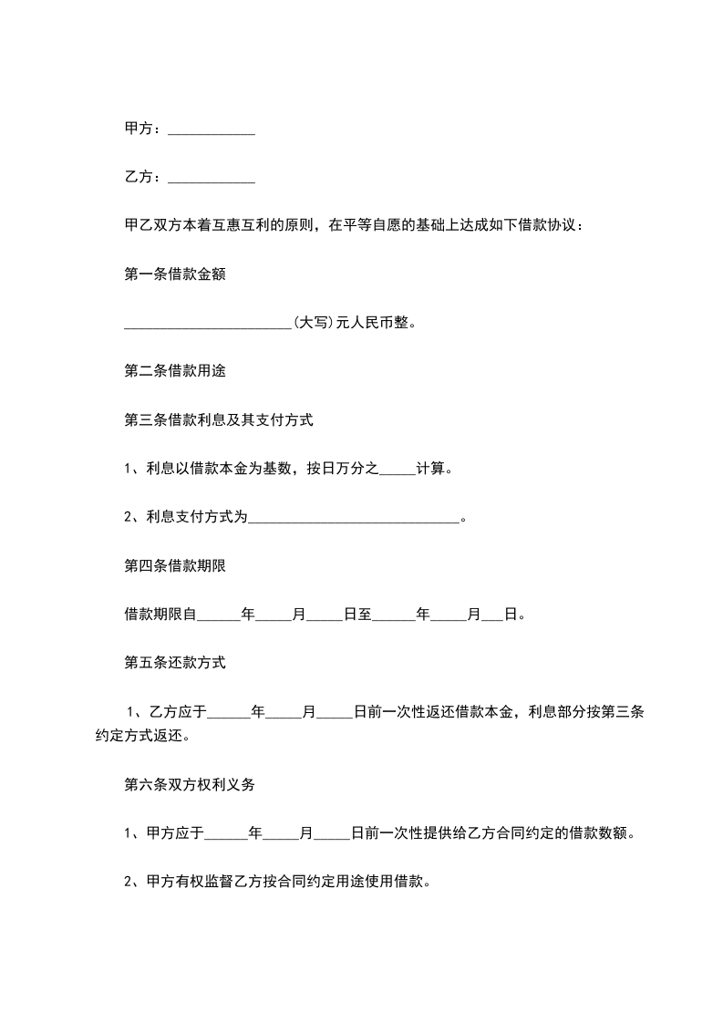 4、本借款乙方最迟于借款支付日起天内归还给甲方。