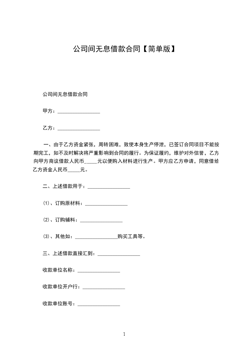 公司间无息借款合同