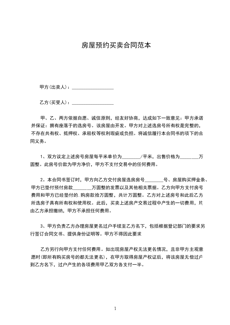 1、双方议定上述房号房屋每平米单价为________/平米,出售价格为________万圆整。此房号价款为甲方净价,甲方不支付交易中的任何费用。