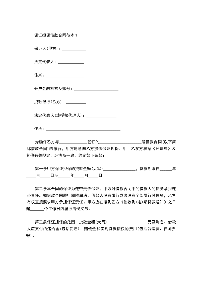 第一条甲方保证担保的贷款金额(大写)________________,贷款期限自______年_____月_____日至______年_____月_____日