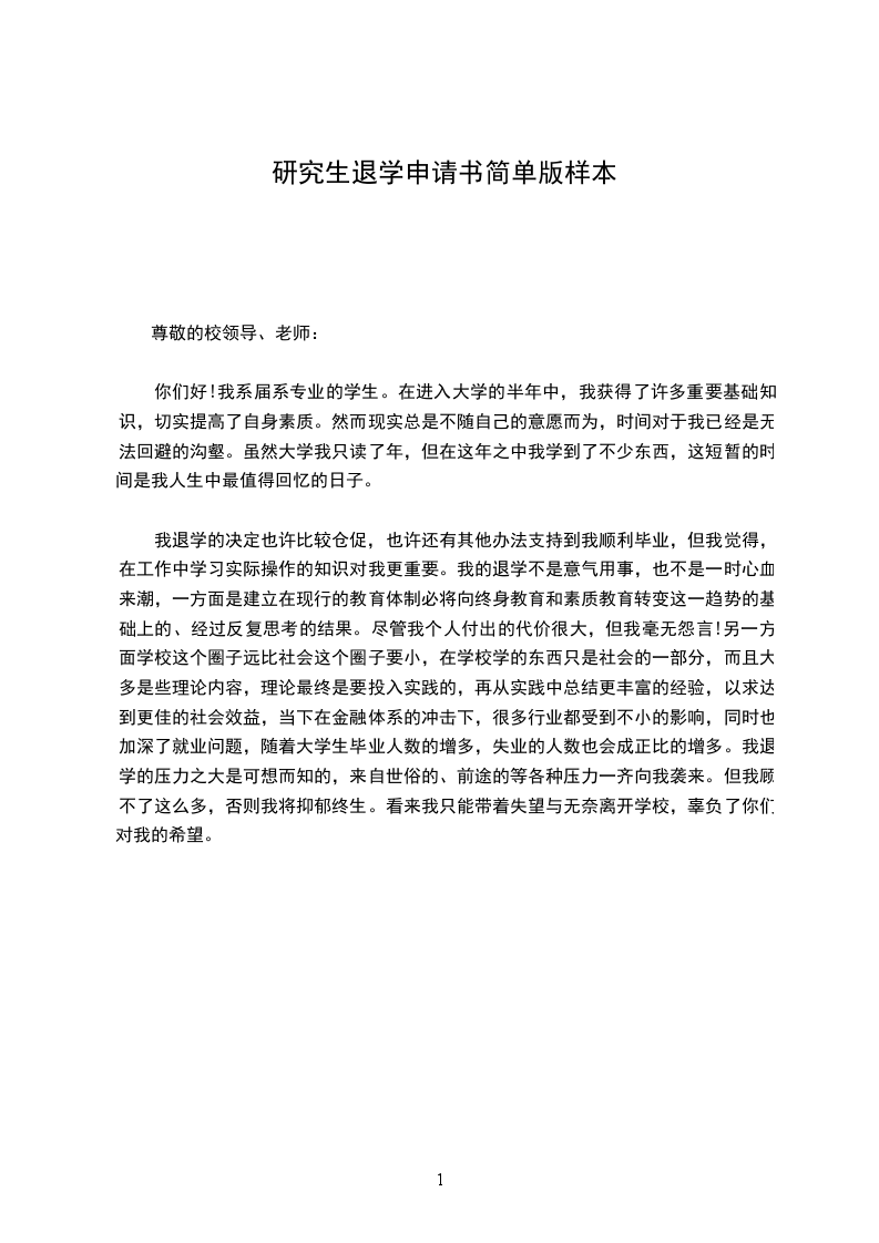 我退学的决定也许比较仓促,也许还有其他办法支持到我顺利毕业,但我觉得,在工作中学习实际操作的知识对我更重要。我的退学不是意气用事,也不是一时心血来潮,一方面是建立在现行的教育体制必将向终身教育和素质教育转变这一趋势的基础上的、经过反复思考的结果。尽管我个人付出的代价很大,但我毫无怨言!另一方面学校这个圈子远比社会这个圈子要小,在学校学的东西只是社会的一部分,而且大多是些理论内容,理论最终是要投入实践的,再从实践中总结更丰富的经验,以求达到更佳的社会效益,当下在金融体系的冲击下,很多行业都受到不小的影响,同时也加深了就业问题,随着大学生毕业人数的增多,失业的人数也会成正比的增多。我退学的压力之大是可想而知的,来自世俗的、前途的等各种压力一齐向我袭来。但我顾不了这么多,否则我将抑郁终生。看来我只能带着失望与无奈离开学校,辜负了你们对我的希望。