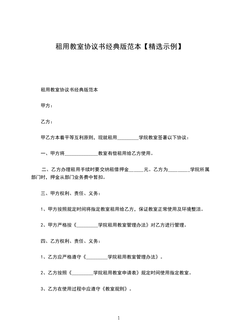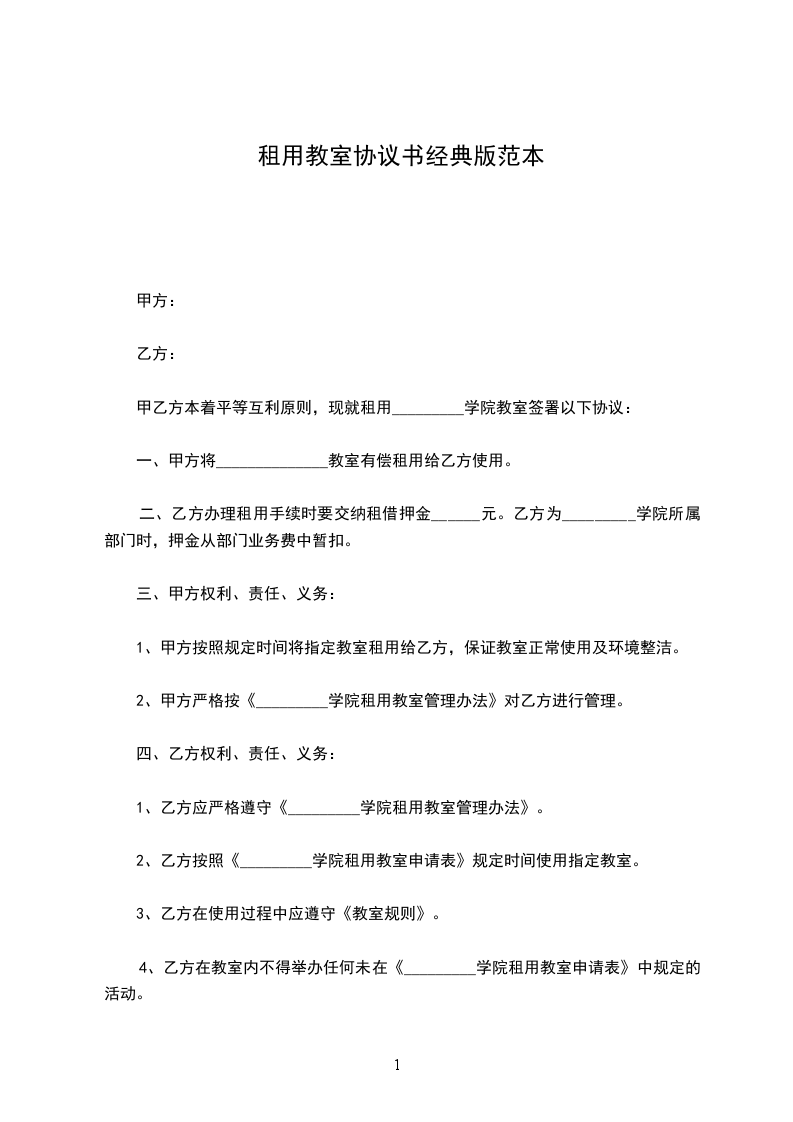 甲乙方本着平等互利原则,现就租用_________学院教室签署以下协议: