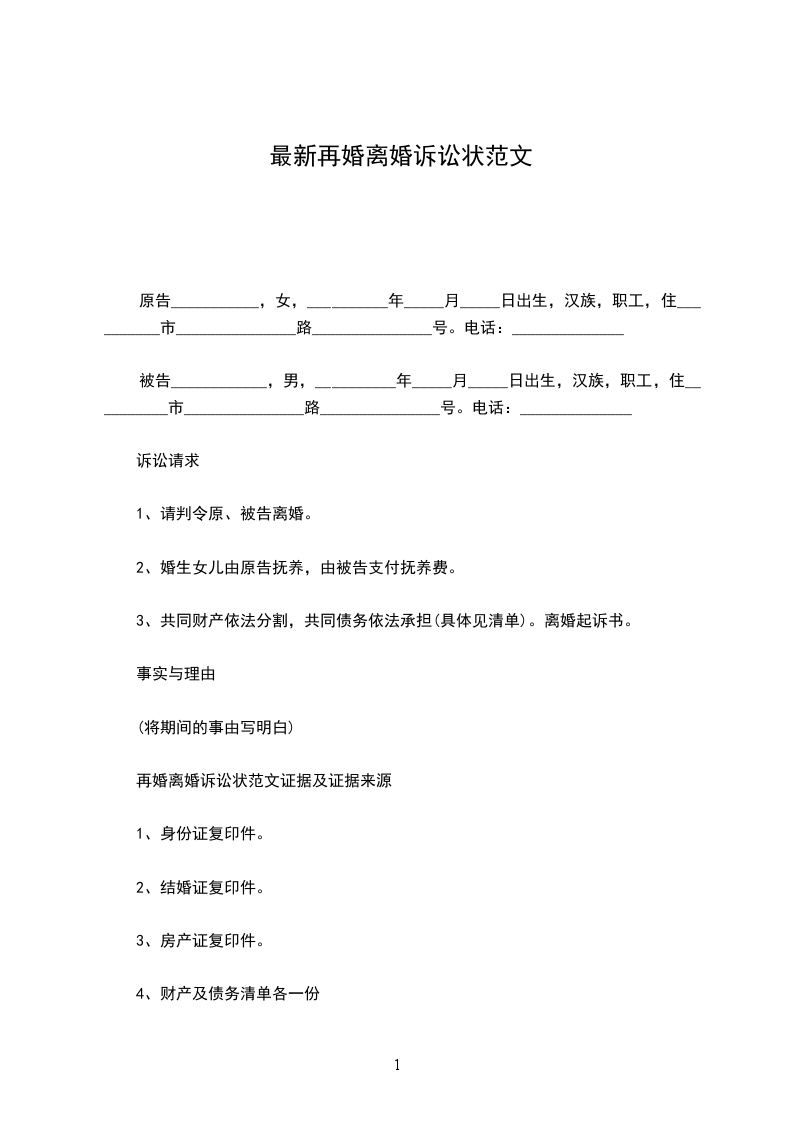 原告___________,女,__________年_____月_____日出生,汉族,职工,住__________市_______________路_______________号。电话:______________