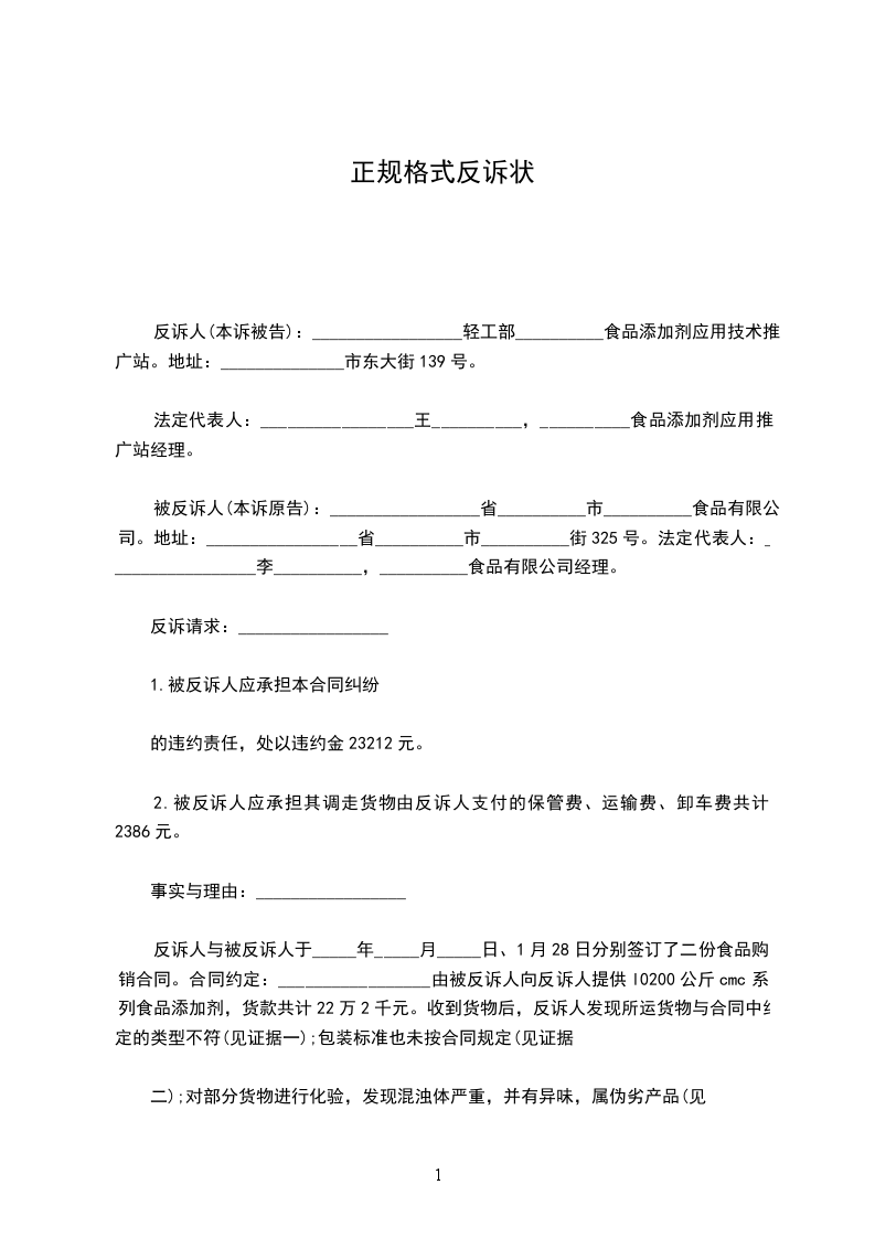 反诉请求:_________________