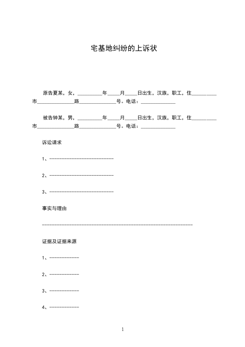 原告夏某,女,__________年_____月_____日出生,汉族,职工,住__________市_______________路_______________号。电话:______________