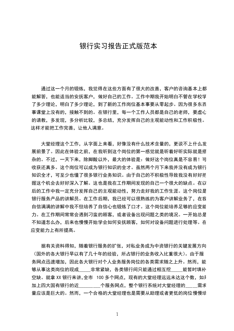 据有关资料得知,随着银行服务的扩张,对私业务成为中资银行的关键发展方向(国外的各大银行早以有了几十年的经验,所占银行的业务收入比重很大)。由于服务网点迅速增加,因此各大银行对个人业务服务岗位的各类需求随之上升。然而,能够从事这类岗位的现成_____非常紧缺,各类银行间只能通过相互挖_____能暂时填补空缺。就拿XX银行来讲,全市100多个网点,现有的大堂经理远远未达这个数,如果加上四大国有银行的近_________个服务网点,整个银行系统对大堂经理的_____需求量应该是巨大的。然而,一个合格的大堂经理也是需要从助理或者更低的岗位慢慢培养的。因此,大堂经理助理岗位见习,对于我们来说是百利而无一害啊。所以这个最初看起来很渺小的岗位却为我们以后的路铺上了一块很好的基石。因此我明白,无论是什么岗位都能让自己收获一些可贵的东西,发现一些问题,都可以让自己成长。