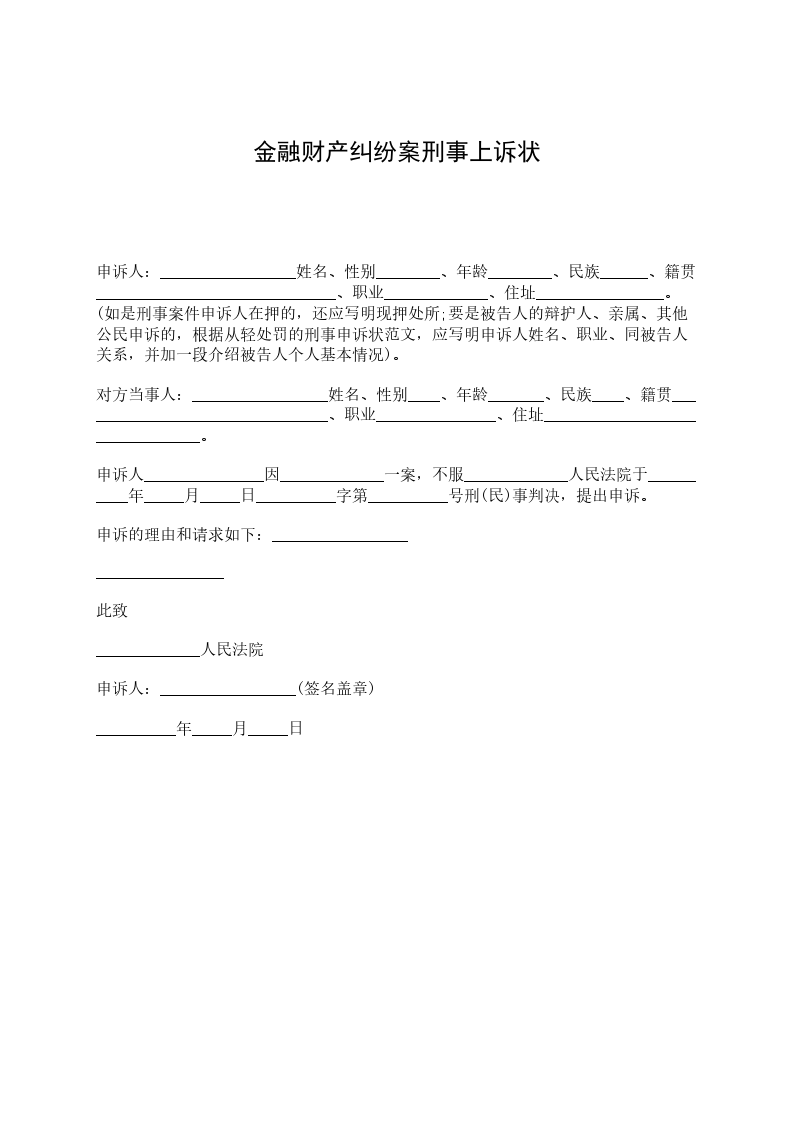 申诉人:_________________姓名、性别________、年龄________、民族______、籍贯______________________________、职业_____________、住址________________。(如是刑事案件申诉人在押的,还应写明现押处所;要是被告人的辩护人、亲属、其他公民申诉的,根据从轻处罚的刑事申诉状范文,应写明申诉人姓名、职业、同被告人关系,并加一段介绍被告人个人基本情况)。 对方当事人:_________________姓名、性别____、年龄_______、民族____、籍贯________________________________、职业_______________、住址________________________________。 申诉人_______________因_____________一案,不服_____________人民法院于__________年_____月_____日__________字第__________号刑(民)事判决,提出申诉。 申诉的理由和请求如下:_________________ ________________ 此致 _____________人民法院 申诉人:_________________(签名盖章) __________年_____月_____日