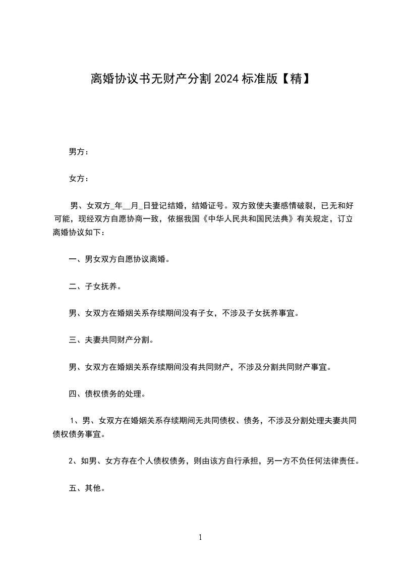 2、没有夫妻共同财产,没有财产争议;