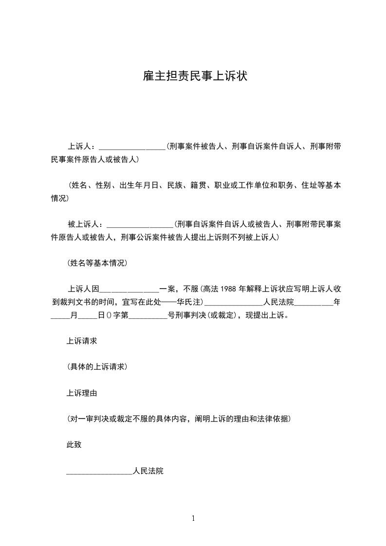 上诉人因_______________一案,不服(高法1988年解释上诉状应写明上诉人收到裁判文书的时间,宜写在此处——华氏注)_______________人民法院__________年_____月_____日()字第__________号刑事判决(或裁定),现提出上诉。