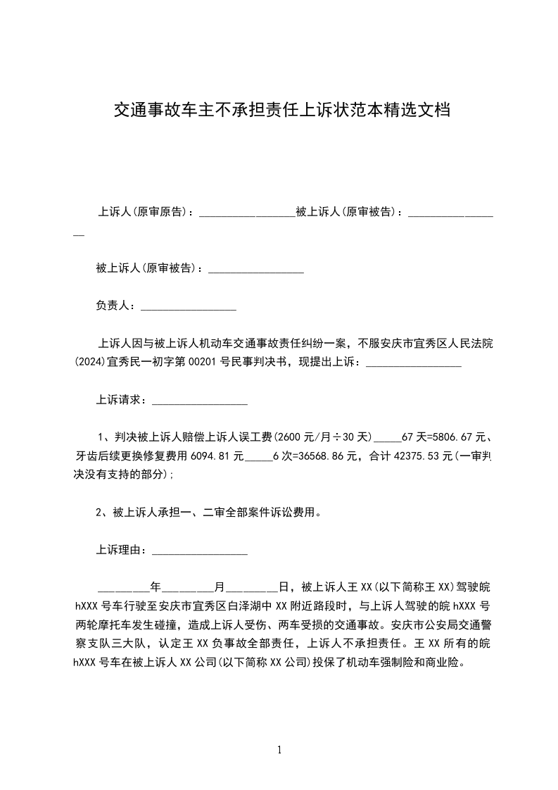 (具体的上诉请求)