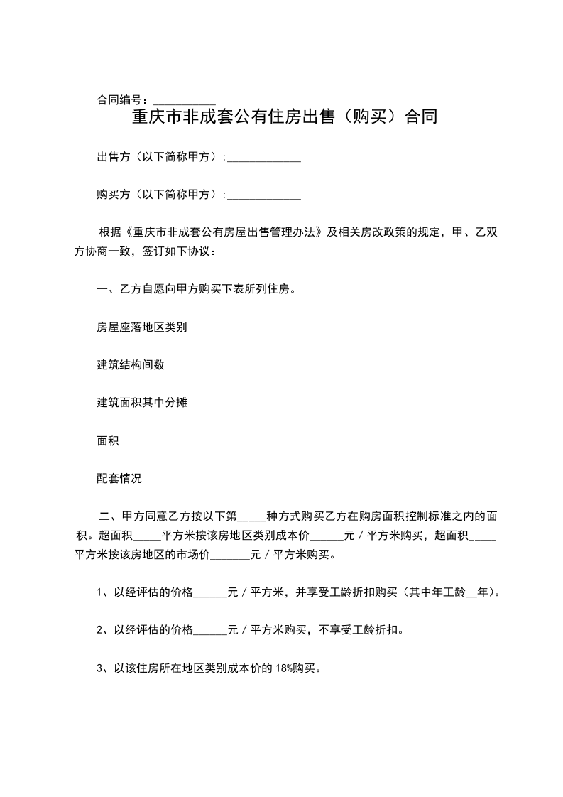 根据《重庆市非成套公有房屋出售管理办法》及相关房改政策的规定,甲、乙双方协商一致,签订如下协议: