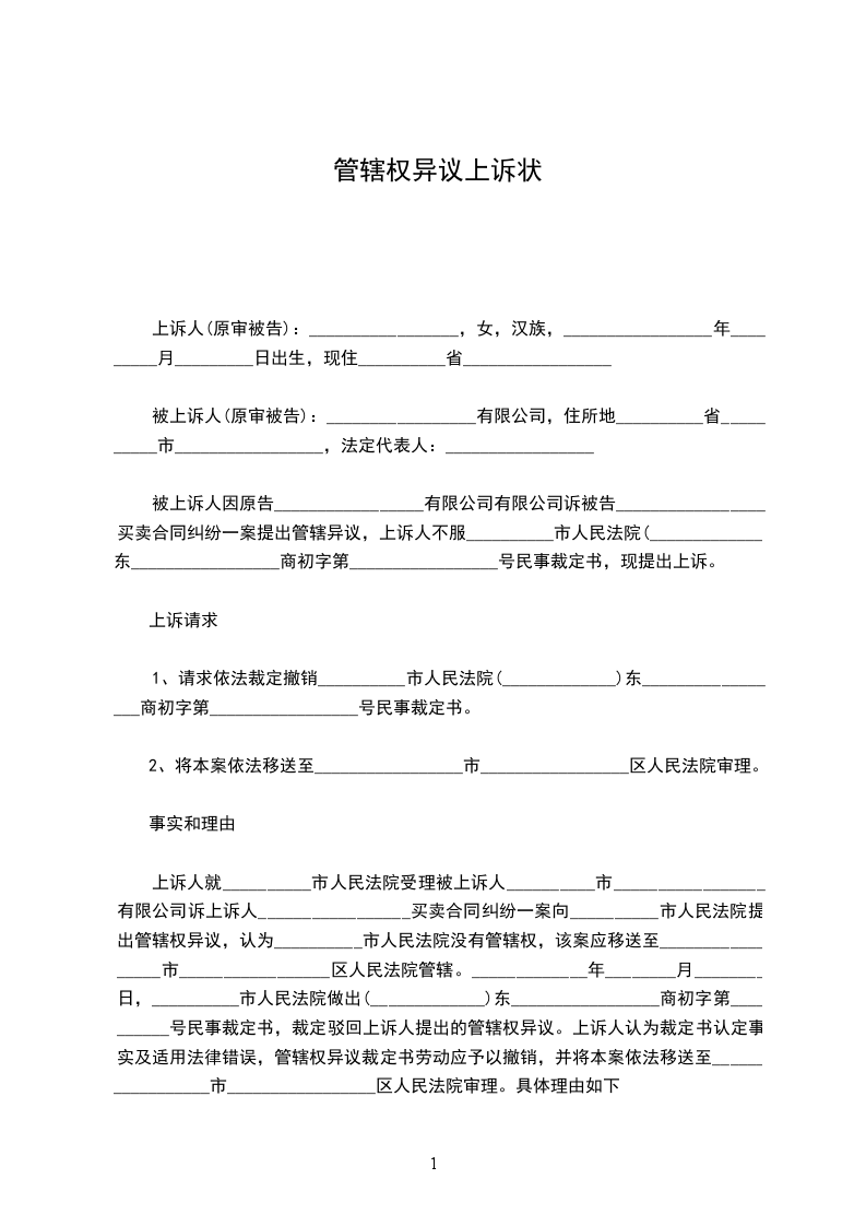 被上诉人因原告_________________有限公司有限公司诉被告_________________买卖合同纠纷一案提出管辖异议,上诉人不服__________市人民法院(_____________)东_________________商初字第_________________号民事裁定书,现提出上诉。