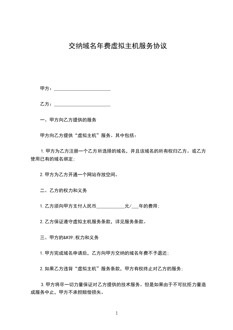 3.如因乙方原因造成虚拟主机服务中断或开通不及时,由乙方负责。
