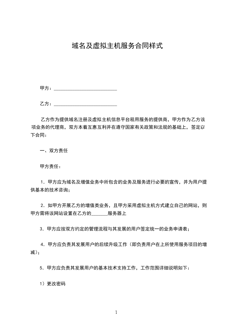 1.甲方应为域名及增值业务中所包含的业务及服务进行必要的宣传,并为用户提供基本的技术咨询;