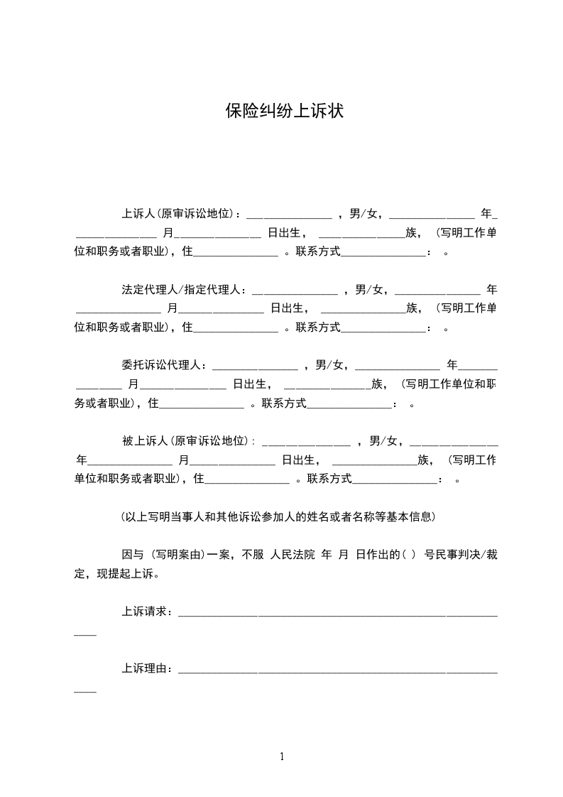 上诉人:_________________名字_____________,性别_______________,民族__________,年龄__________,身份证号:_____________,文化程度__________,出生地________________,住所地________________.