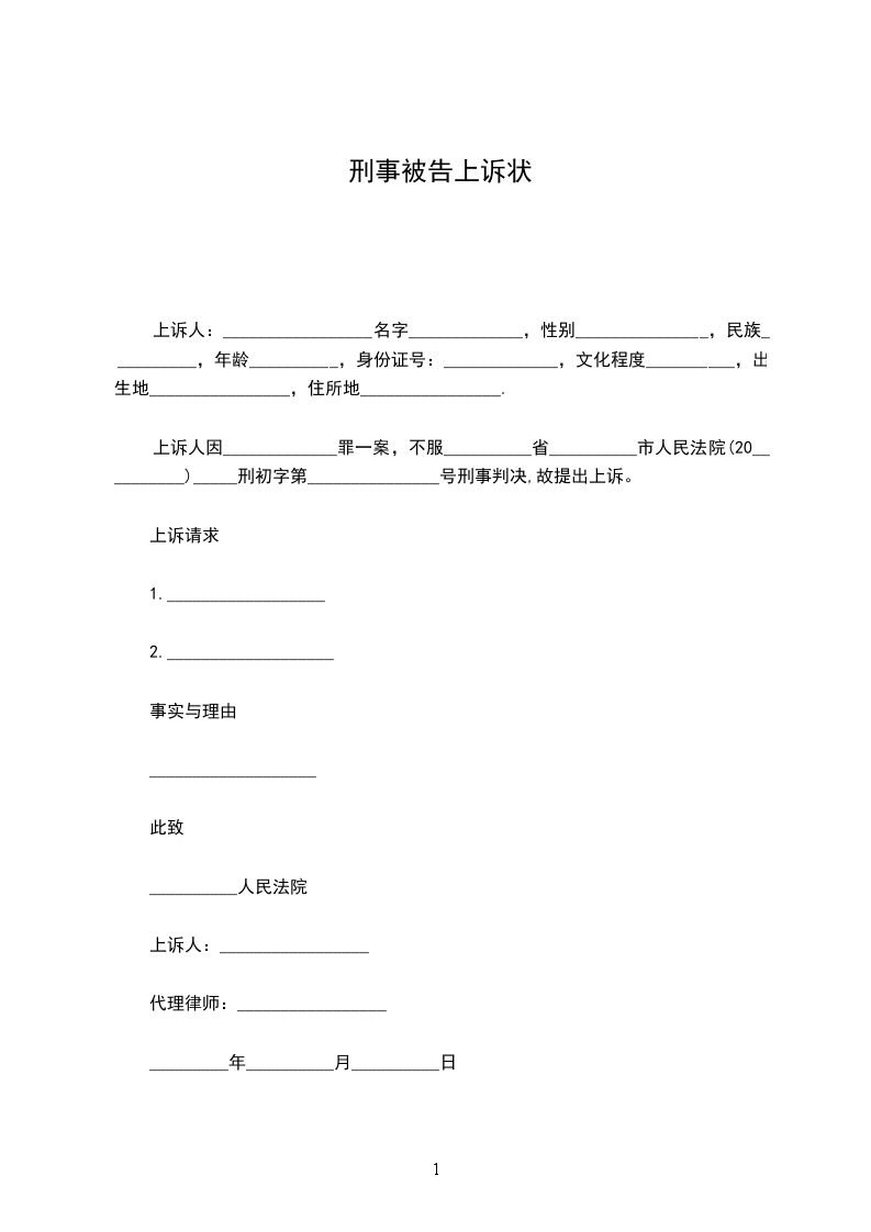 上诉人因_____________罪一案,不服__________省__________市人民法院(20__________)_____刑初字第_______________号刑事判决,故提出上诉。