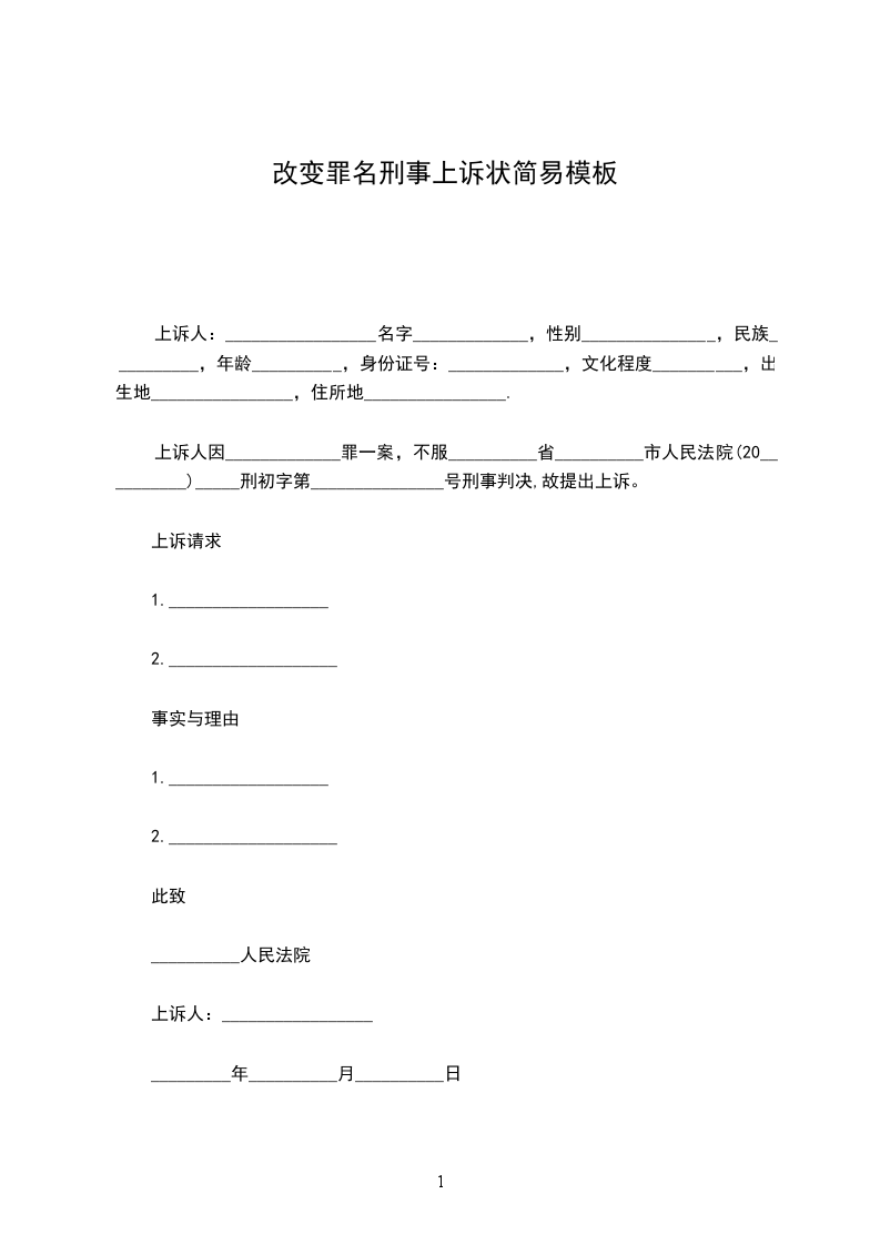 上诉人:_________________名字_____________,性别_______________,民族__________,年龄__________,身份证号:_____________,文化程度__________,出生地________________,住所地________________.