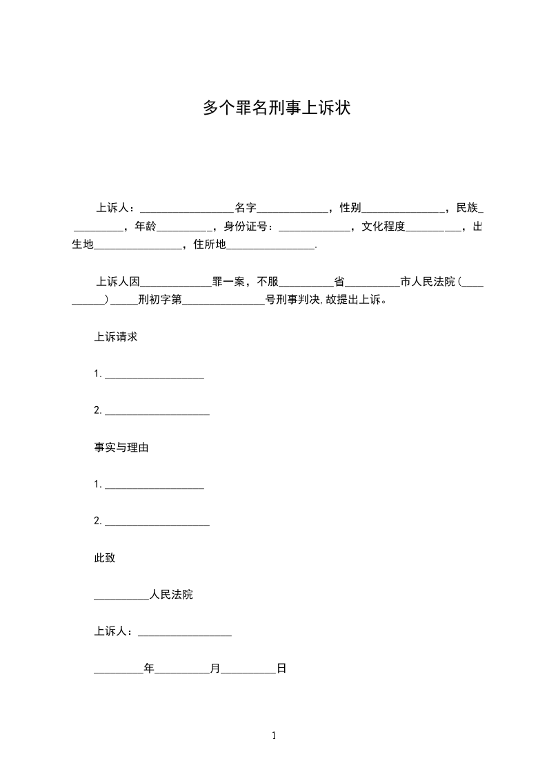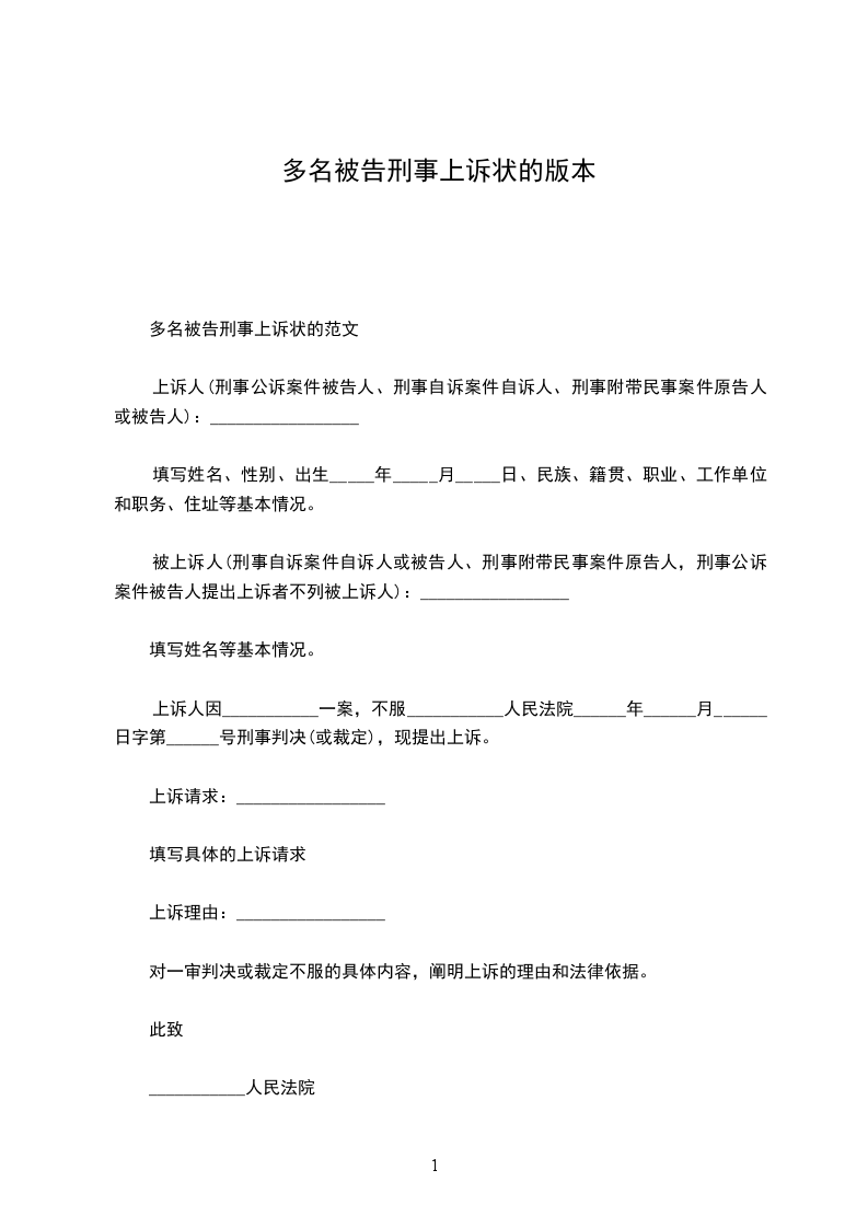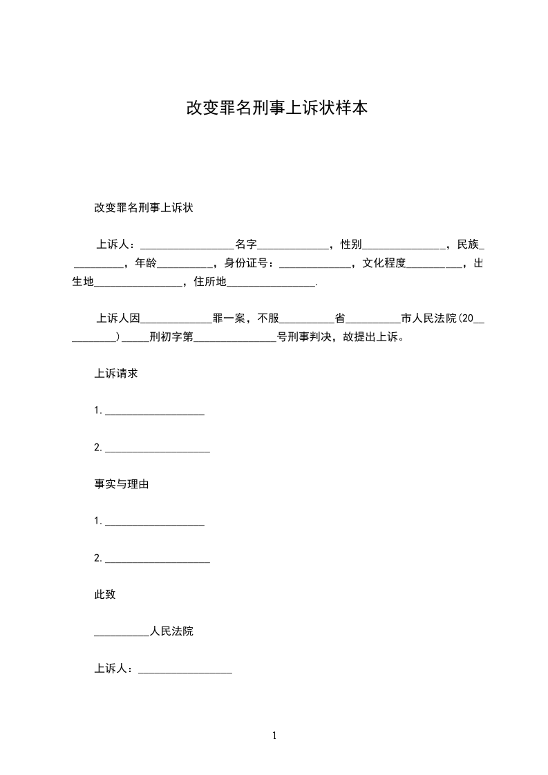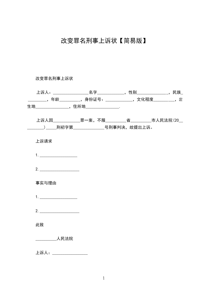 上诉人:_________________名字_____________,性别_______________,民族__________,年龄__________,身份证号:_____________,文化程度__________,出生地________________,住所地________________.