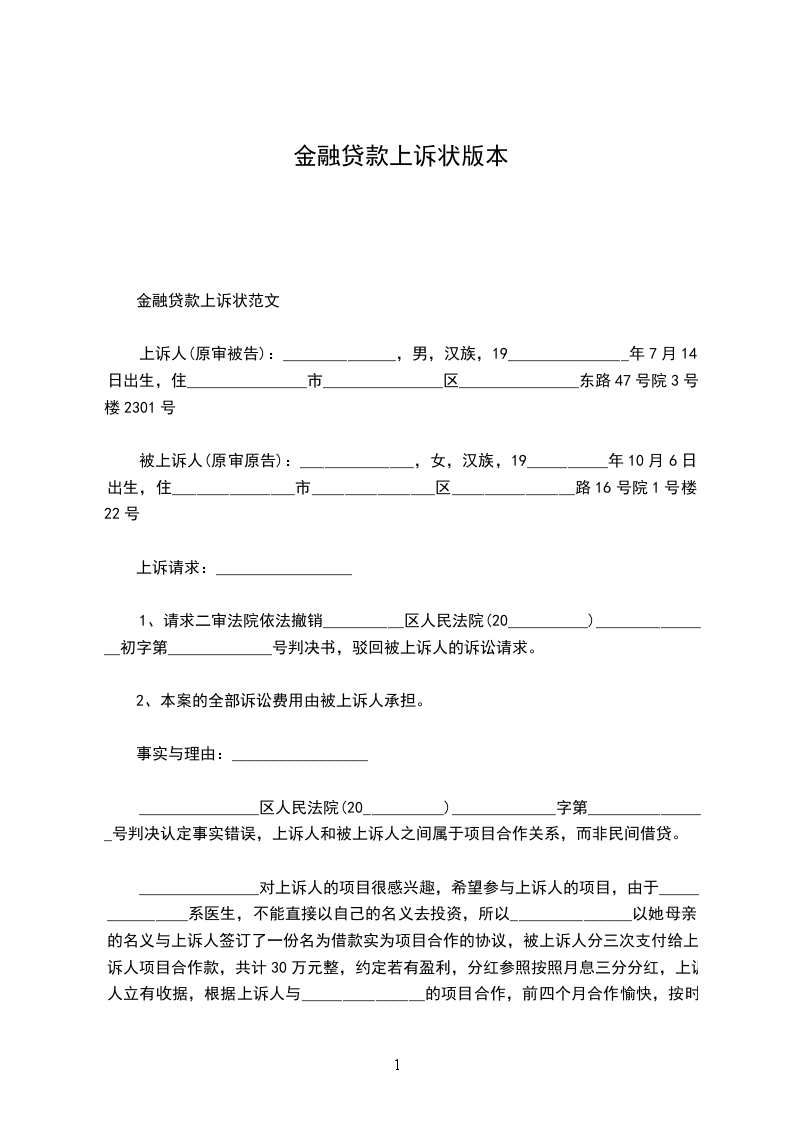 上诉理由:_________________