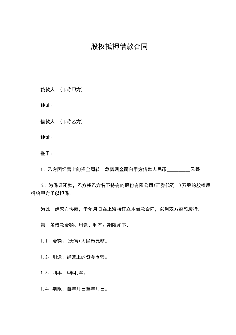 2、为保证还款,乙方将乙方名下持有的股份有限公司(证券代码:)万股的股权质押给甲方予以担保。