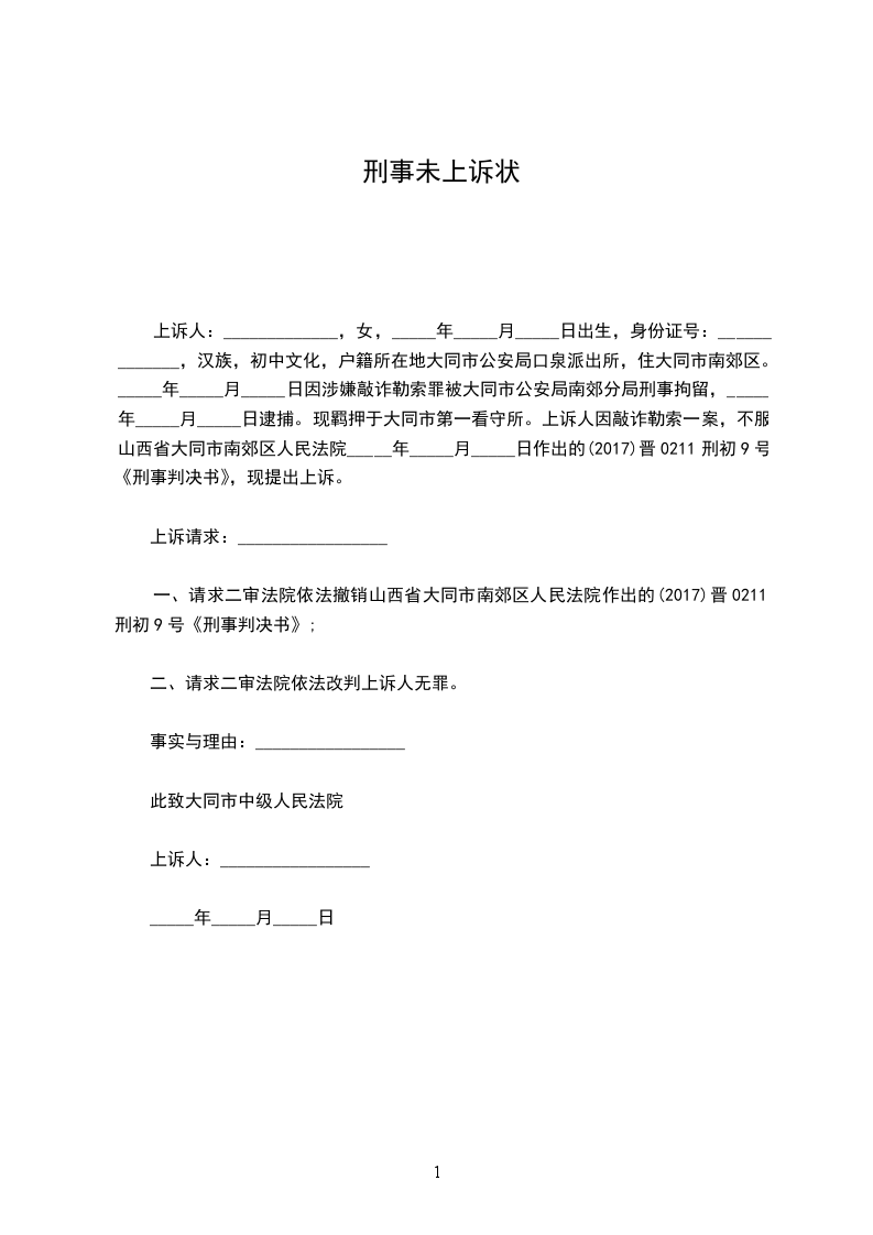 上诉人:______________(盖章)
