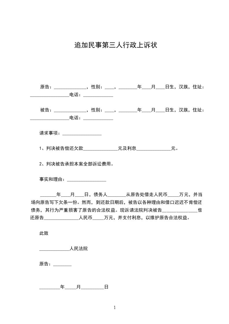 原告:______________,性别:____,________年____月____日生,汉族,住址:_________________电话:_____________