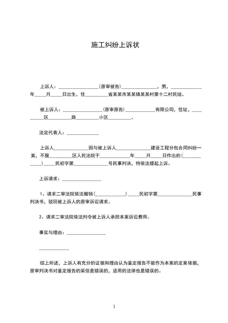 1、请求二审法院依法撤销(_____________)_____民初字第_______________民事判决书,驳回被上诉人的原审诉讼请求。