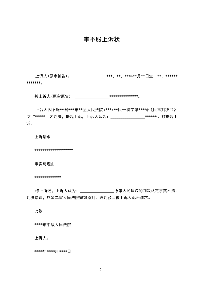 上诉人因不服**省***市**区人民法院(***)**民一初字第***号《民事判决书》之“*****”之判决,提起上诉,上诉人认为:_________________******。故提起上诉。