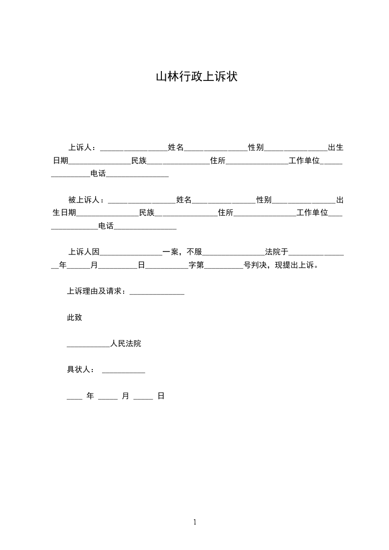 上诉人:_________________姓名________________性别________________出生日期________________民族________________住所________________工作单位________________电话________________