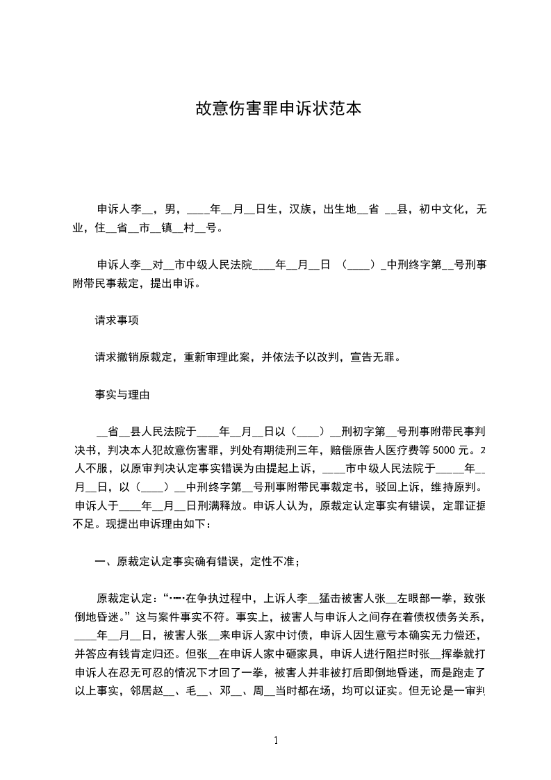 上诉人因_______________一案,不服(高法1988年解释上诉状应写明上诉人收到裁判文书的时间,宜写在此处——华氏注)_______________人民法院__________年_____月_____日()字第__________号刑事判决(或裁定),现提出上诉。