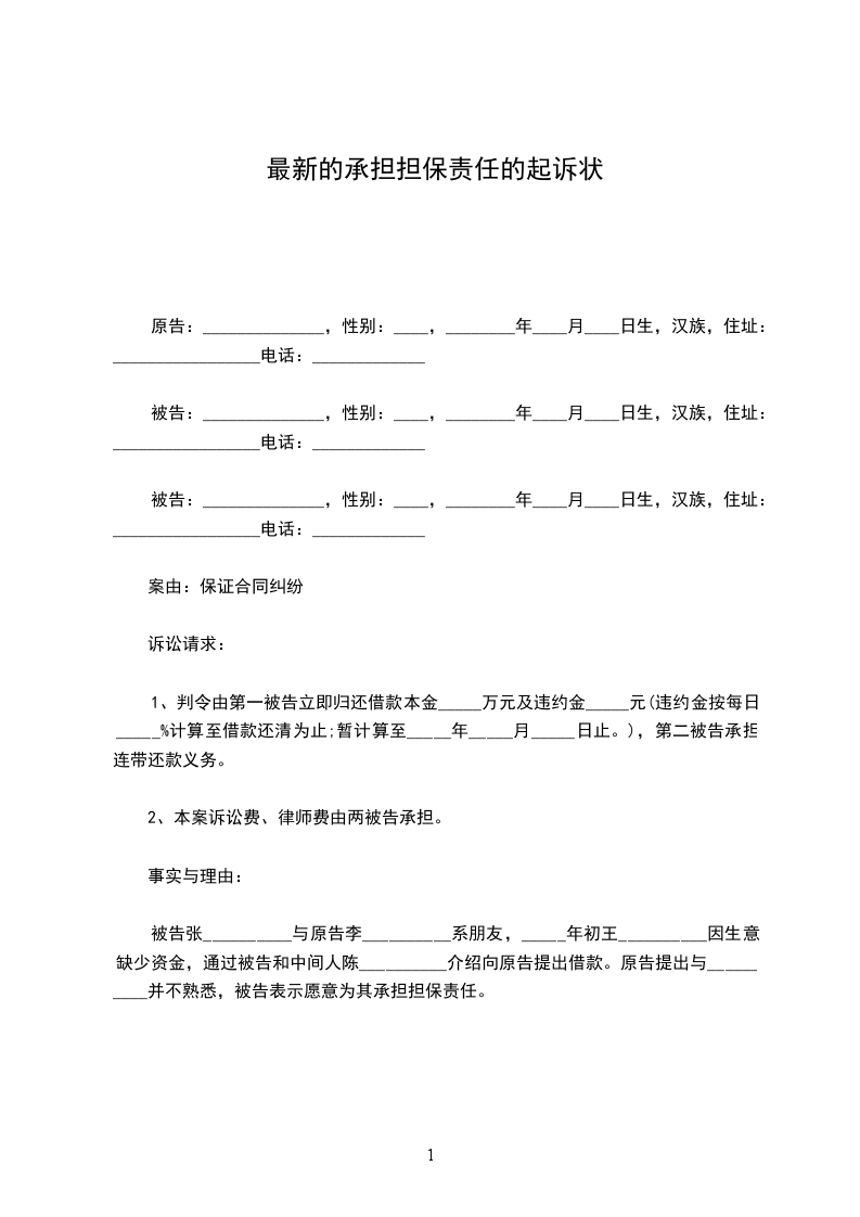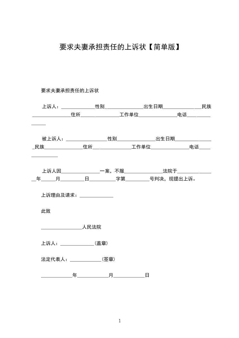 上诉人:______________性别________________出生日期________________民族________________住所________________工作单位________________电话________________