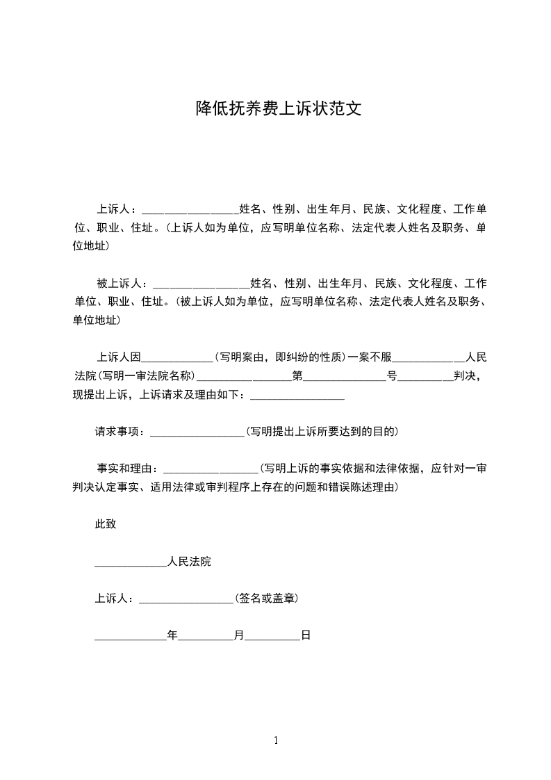 请求事项:_________________(写明提出上诉所要达到的目的)