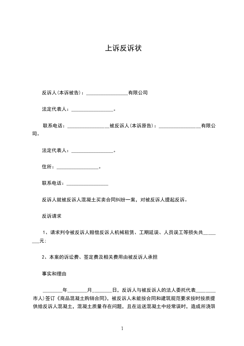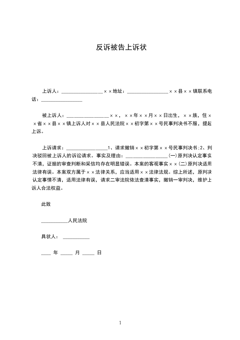 上诉人:_________________ⅹⅹ地址:_________________ⅹⅹ县ⅹⅹ镇联系电话:_________________