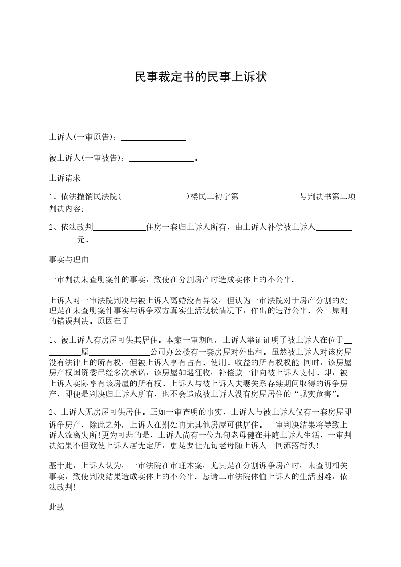 上诉人不服__________区人民法院(_____)皖__________民初__________号民事裁定书之裁定,特依法提起上诉,请求二审法院依法撤销一审裁定,指定一审法院进行实体审理。