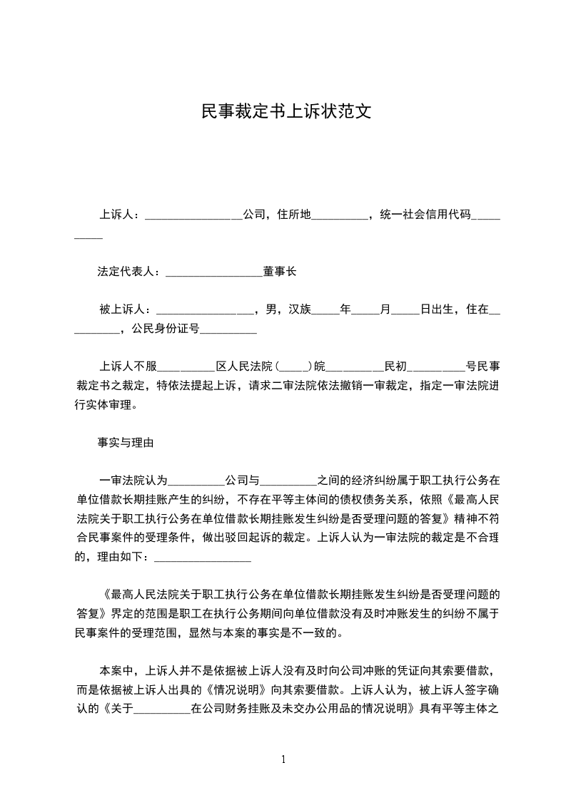 一审法院认为__________公司与__________之间的经济纠纷属于职工执行公务在单位借款长期挂账产生的纠纷,不存在平等主体间的债权债务关系,依照《最高人民法院关于职工执行公务在单位借款长期挂账发生纠纷是否受理问题的答复》精神不符合民事案件的受理条件,做出驳回起诉的裁定。上诉人认为一审法院的裁定是不合理的,理由如下:_________________