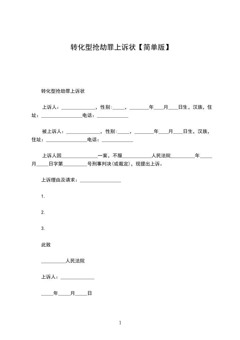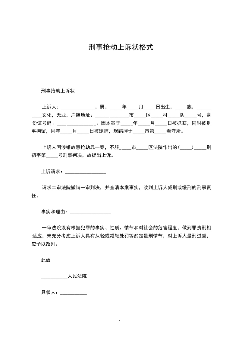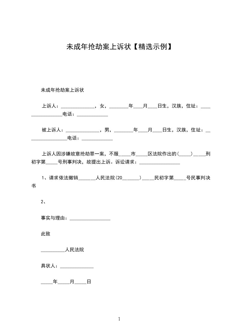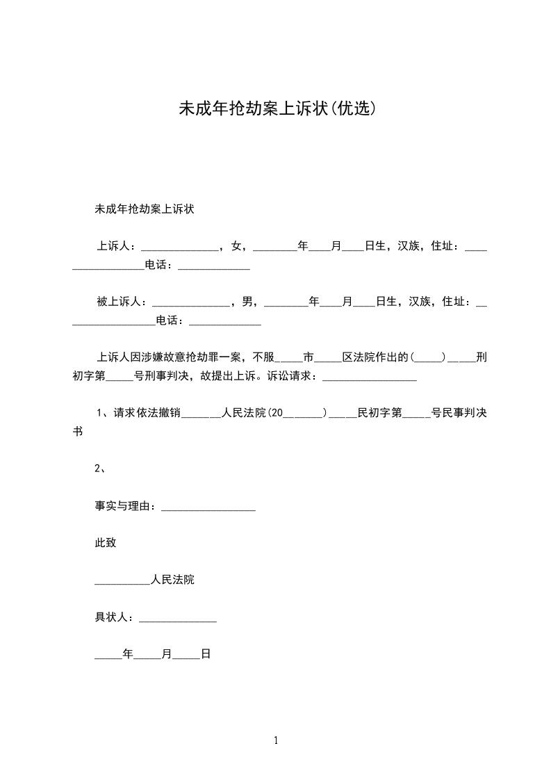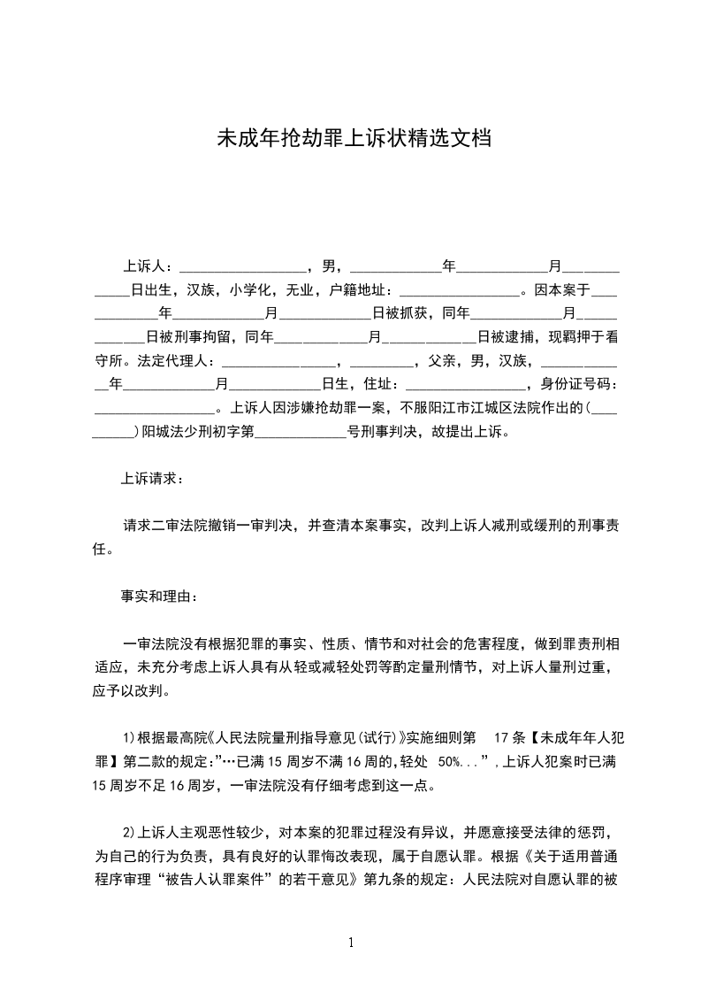 上诉人因涉嫌抢劫罪一案,不服阳江市江城区法院作出的(__________)阳城法少刑初字第 _____________ 号刑事判决,故提出上诉。