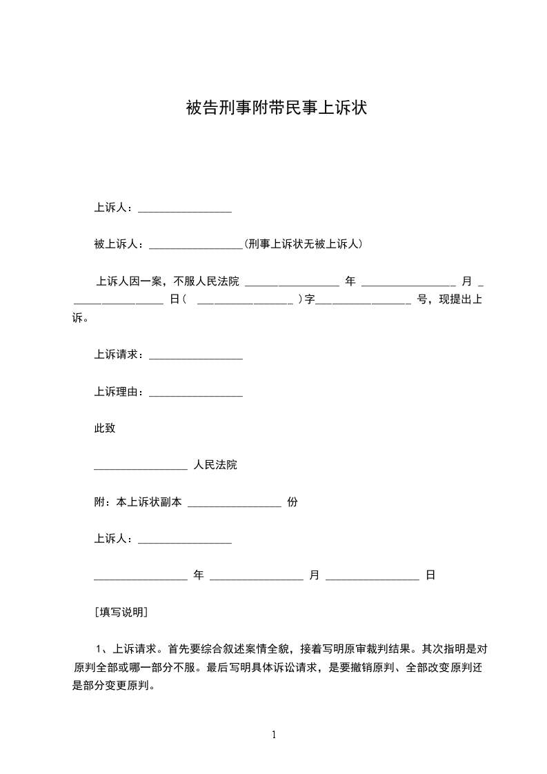 附:本上诉状副本 _________________ 份