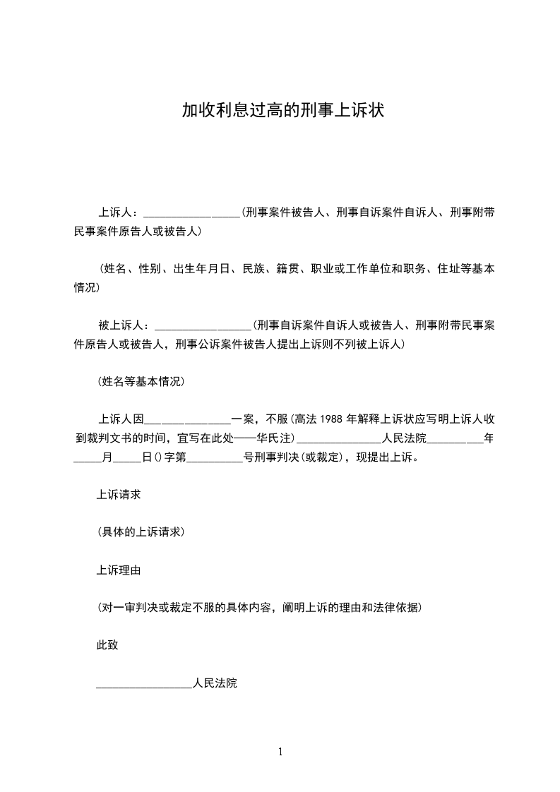 上诉人因_______________一案,不服(高法1988年解释上诉状应写明上诉人收到裁判文书的时间,宜写在此处——华氏注)_______________人民法院__________年_____月_____日()字第__________号刑事判决(或裁定),现提出上诉。